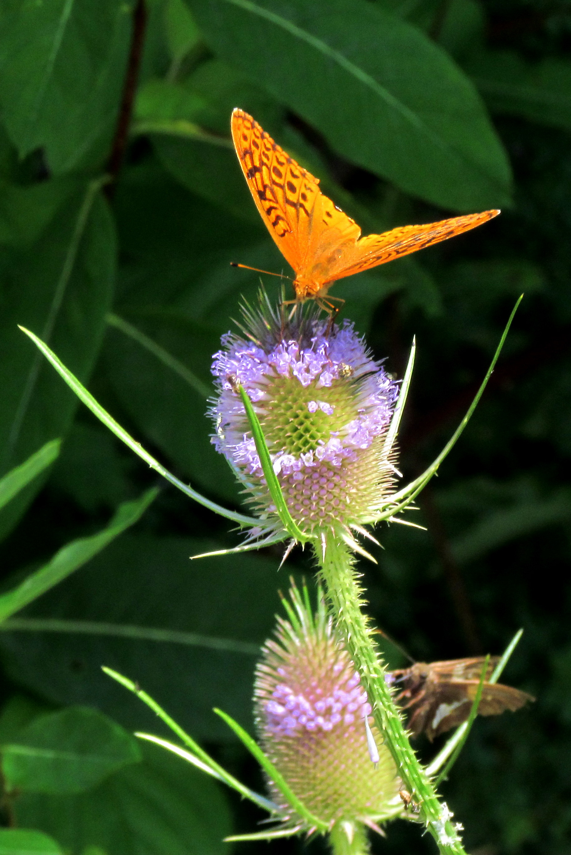 A fritillary butterfly on a teasel blossom